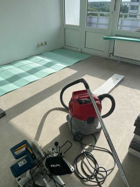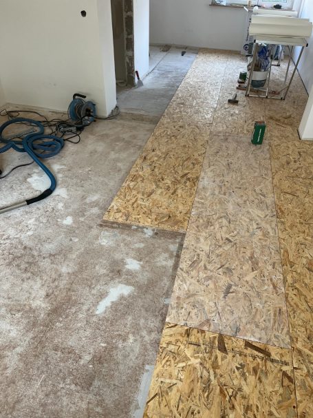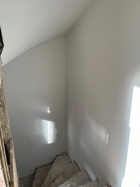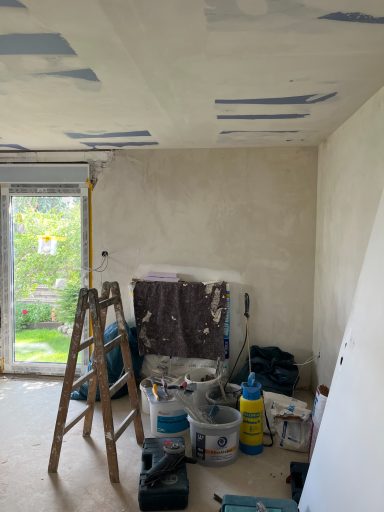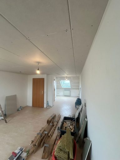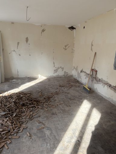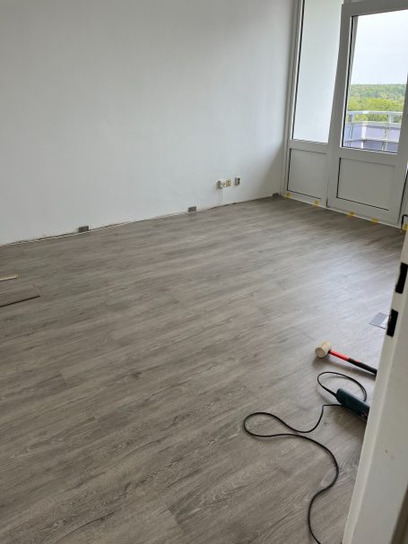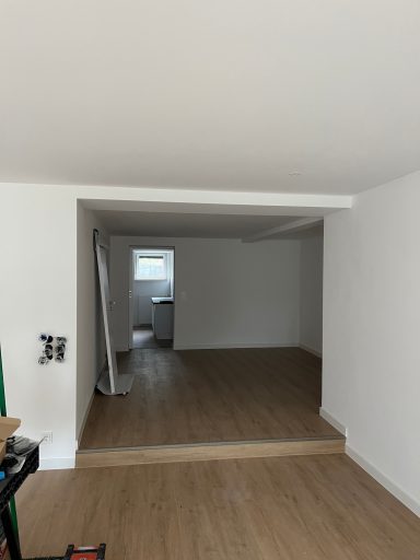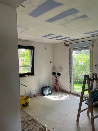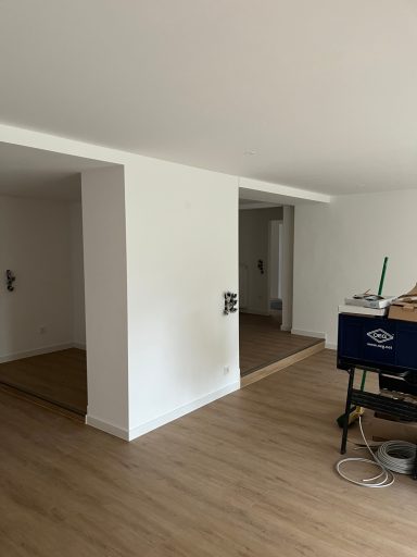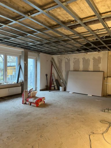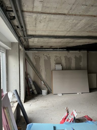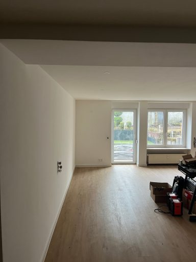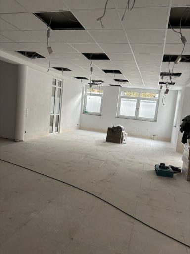 Umnutzung eines ehemaligen Lagerraums zu einer hochwertigen Wohnung: Abgehängte Gipskartondecken, Decken und Wände mit Q3-Spachtelung, Malervlies und präzisen Malerarbeiten für eine makellose Oberfläche. Der edle Vinylboden mit weißen Sockelleisten verleiht den Räumen eine warme, moderne Atmosphäre. Alles aus einer Hand – für höchste Qualität und Perfektion.