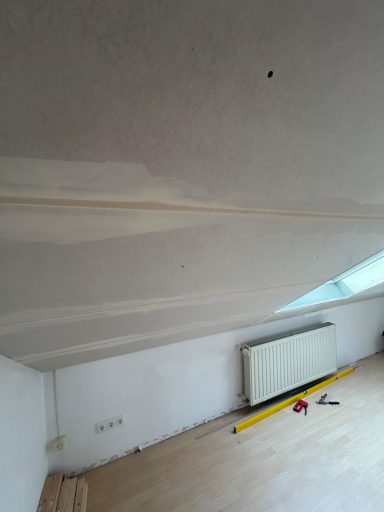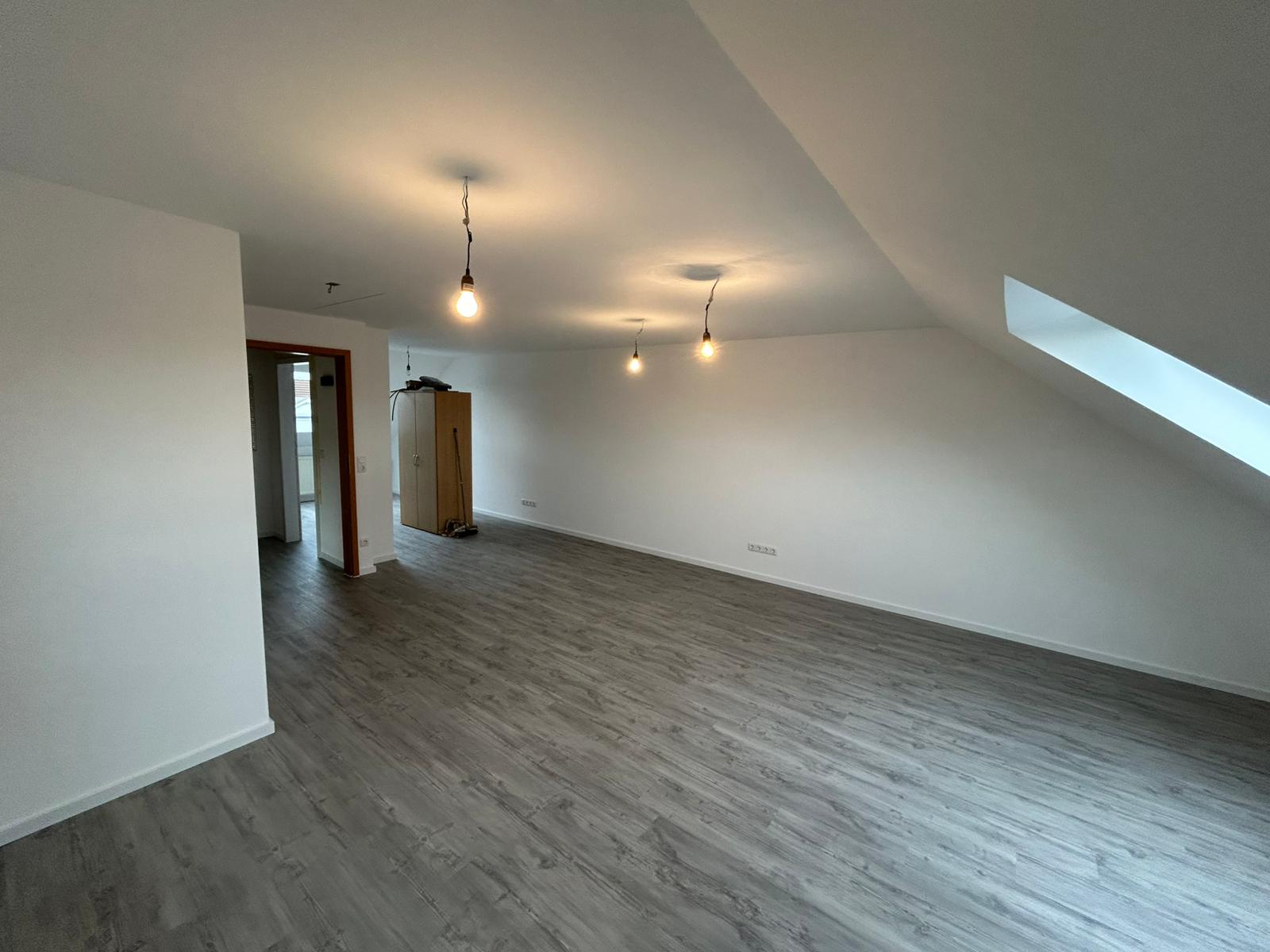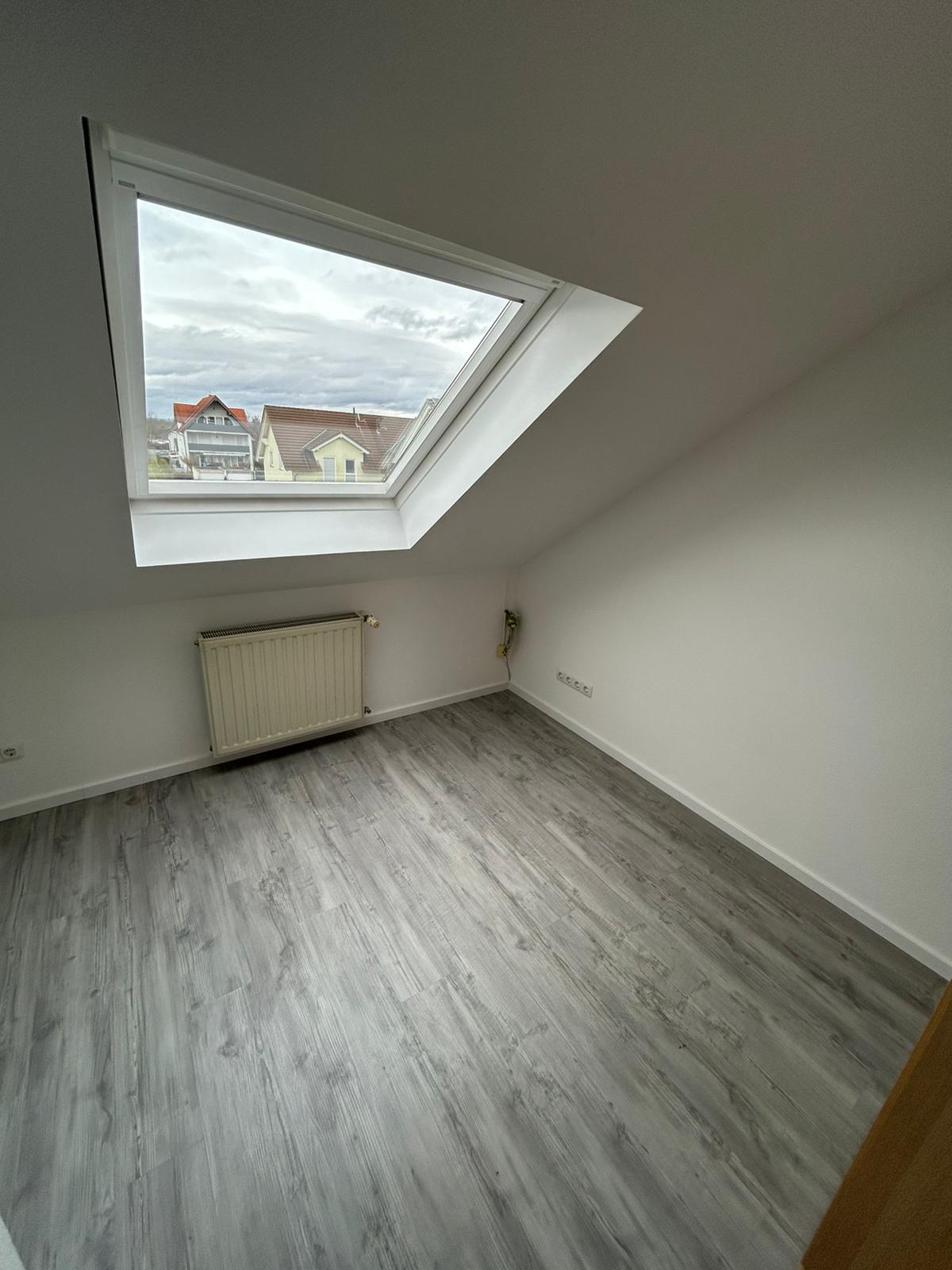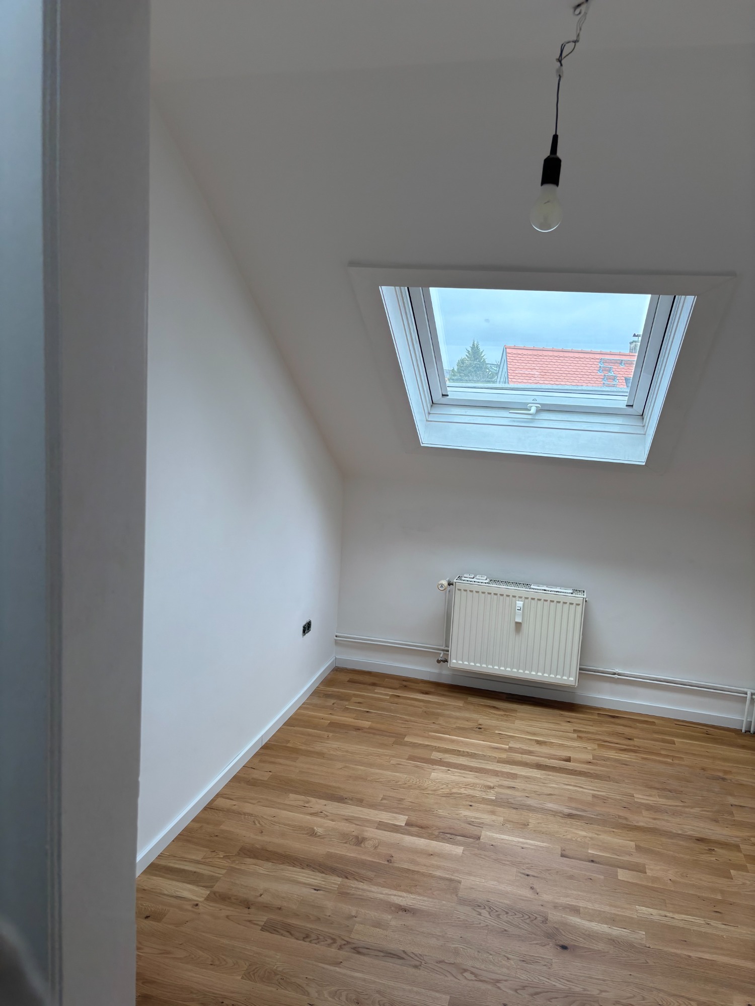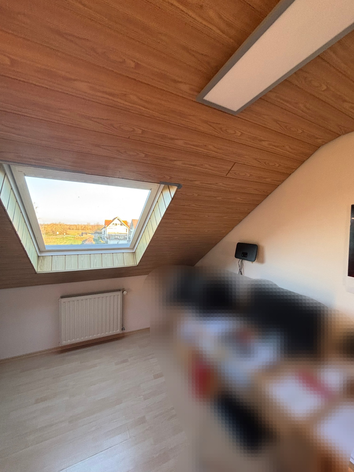 Sanierung nach Wasserschaden im Dachboden: Alle Flächen fachgerecht mit Gipskarton verkleidet und sauber verspachtelt, anschließend mit Malervlies tapeziert und gestrichen. Der edle Vinylboden mit weißen Sockelleisten verleiht den Räumen eine moderne Atmosphäre. Alles aus einer Hand – zuverlässig und sauber umgesetzt.