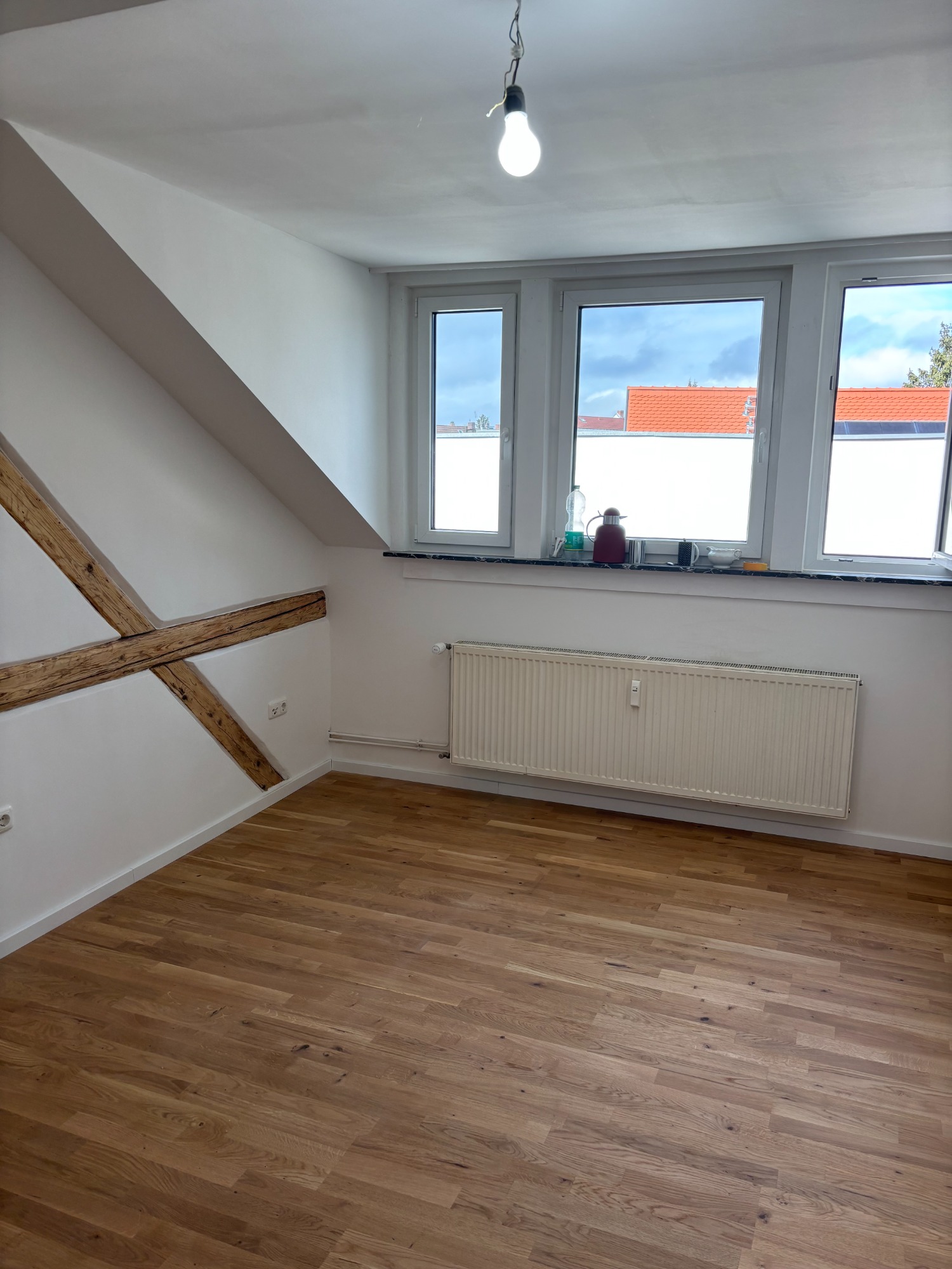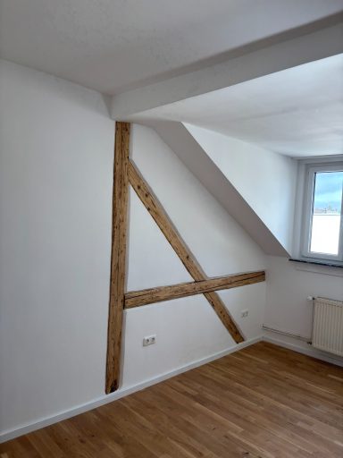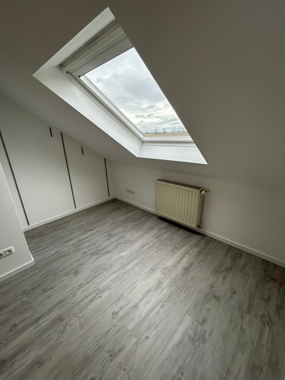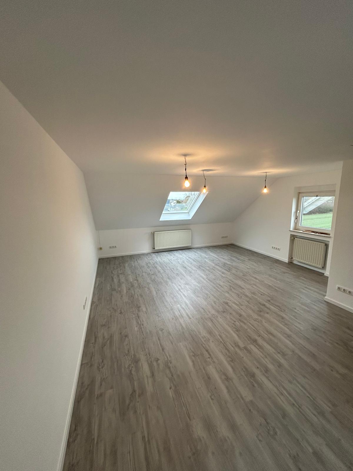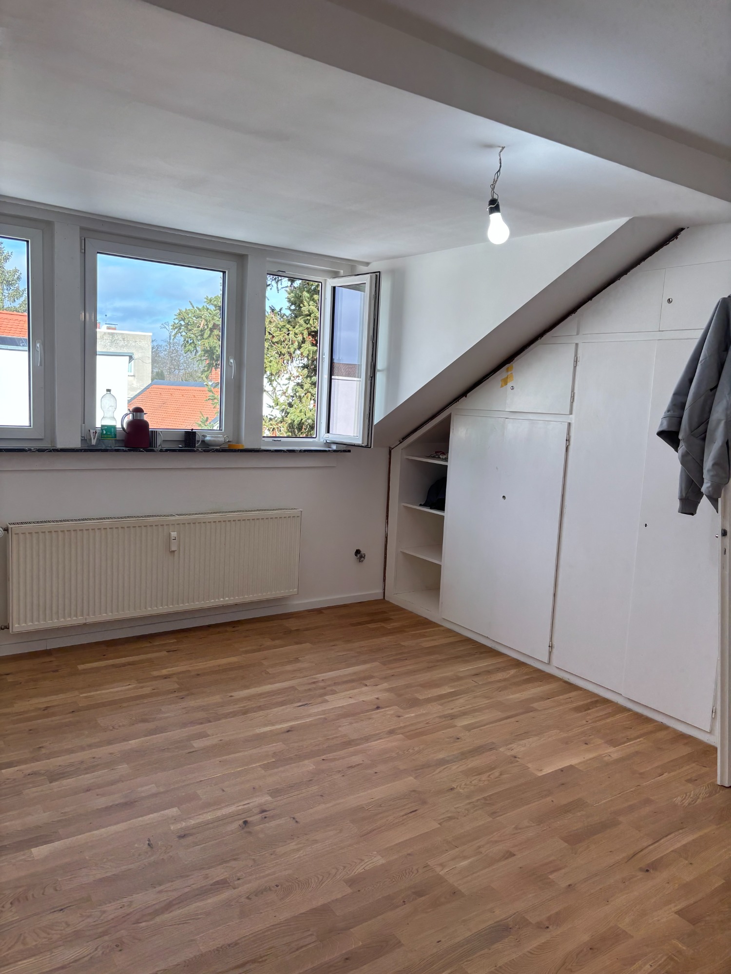 Sanierung nach Wasserschaden im Dachboden: Alle Flächen fachgerecht mit Gipskarton verkleidet und sauber verspachtelt, anschließend mit Malervlies tapeziert und gestrichen. Der edle Vinylboden mit weißen Sockelleisten verleiht den Räumen eine moderne Atmosphäre. Alles aus einer Hand – zuverlässig und sauber umgesetzt.