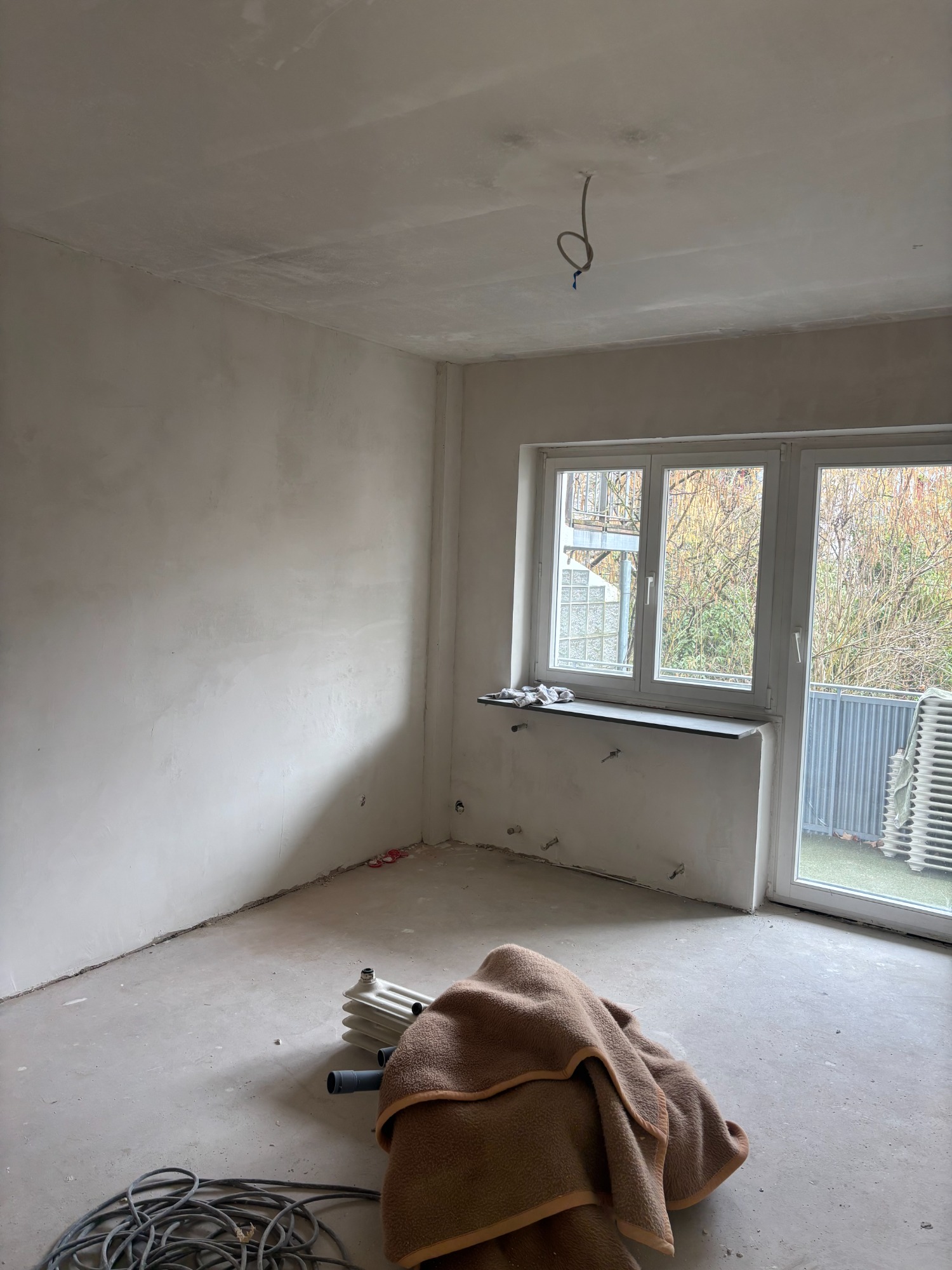 Wohnungssanierung im Bestand mit hochwertigem Innenausbau: Abgehängte Gipskartondecken, Decken und Wände mit Q3-Spachtelung, Malervlies und präzisen Malerarbeiten für eine makellose Oberfläche. Der edle Vinylboden mit weißen Sockelleisten rundet das elegante Gesamtbild ab. Zusätzlich wurde das Badezimmer komplett saniert – alles aus einer Hand - für höchste Qualität und Perfektion.