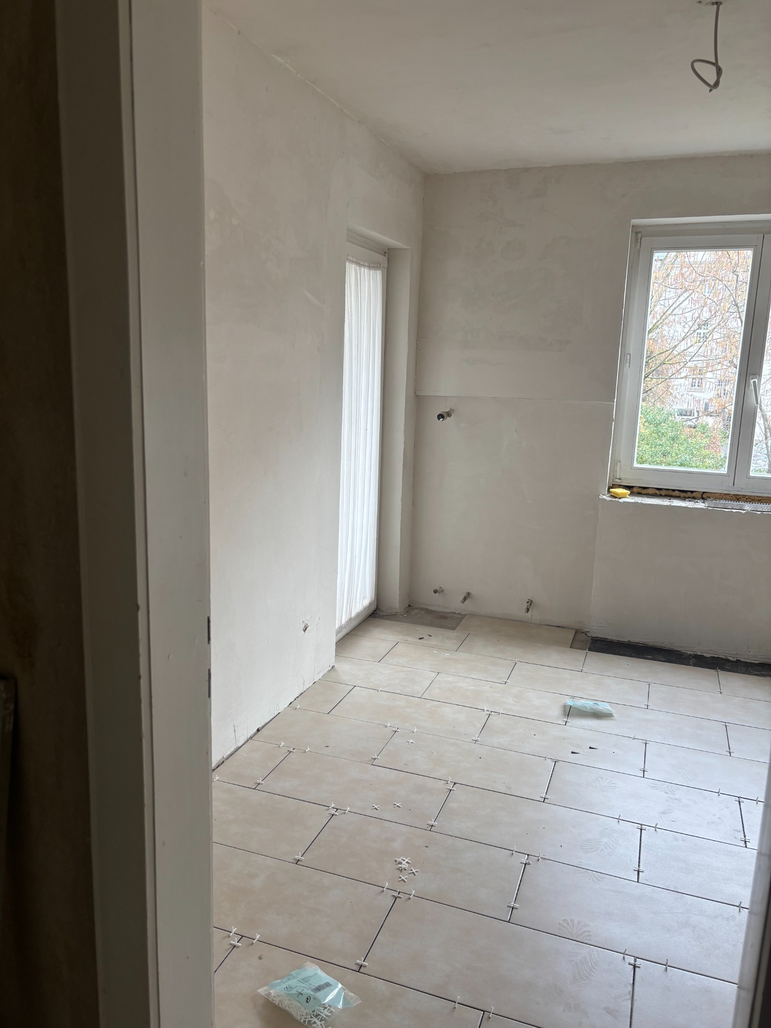 Wohnungssanierung im Bestand mit hochwertigem Innenausbau: Abgehängte Schallschutz Gipskartondecken, Decken und Wände mit Q3-Spachtelung, Malervlies und präzisen Malerarbeiten für eine makellose Oberfläche. Der edle Vinylboden mit Sockelleisten in Bodenfarbe rundet das elegante Gesamtbild ab. Alles aus einer Hand - für höchste Qualität und Perfektion.